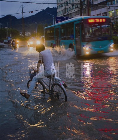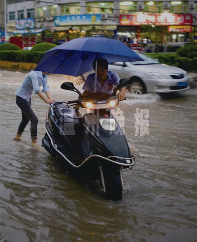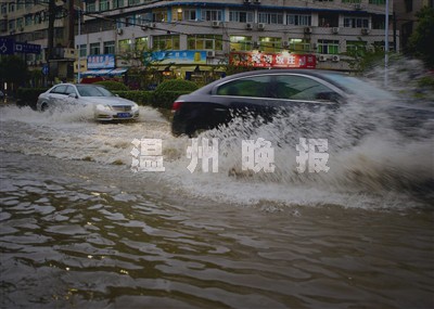 昨天,温州市区已有部分路段积水。昨天下午6点,记者在瓯海区瞿溪街道三溪路与万超路交叉口,发现一段长约300米、最深处达30公分的积水。