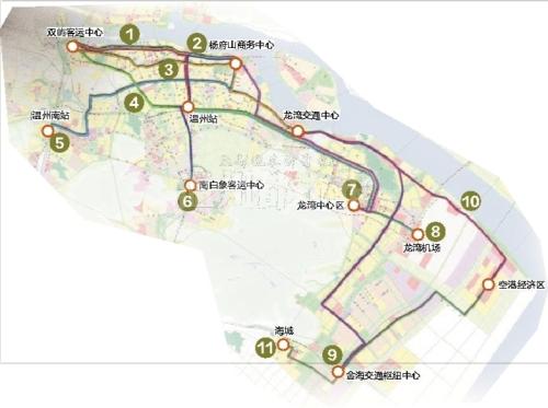根据规划,市域铁路主要是连接主城(中心城西部城区、东部城区、瑞云城区)与辅城(乐柳城区、平苍城区),并为服务范围内各组团提供到达龙湾机场、温州南站、温州站等各大交通枢纽的快速轨道服务。