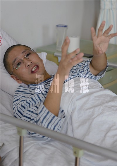 躺在病床上的张灵敏戴着眼镜,看上去文质彬彬。病床上的他,此时已经能够灵活地活动下肢,右手的骨折也已愈合。他说:“再过一个多月,我应该就可以下地行走了。”