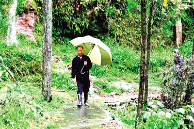 村里没有人比他更了解这片山头。经验告诉他,泥石流跟着水走。没有水,即使山岩裂缝造成塌方,石头也滚不远;一旦雨太大,山水裹挟着石头泥巴,冲出400多米都有可能。为了找到这些地质灾害隐患点,他扒开草丛才能确认那些隐蔽的山岩裂缝。10年里,他走遍这片山上百处地质灾害隐患点,平均每个月他和伙伴上山10来趟。