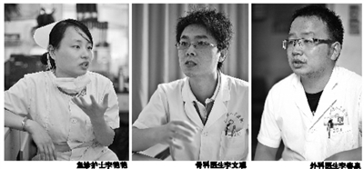 接诊张灵敏的第一个护士是李艳艳,她第一时间致电骨科医师李文聪前来救治。当发现张灵敏腹腔已积血,李文聪又叫来外科医生李春泉一起诊治。这两位医师果然都很年轻,均不到30岁。