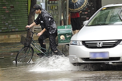 小余:昨天早上大雨,走在118医院附近,看到有车过来,赶紧往旁边避让,还是被溅了一身水,裤子全湿了。无良车主,开车遇水坑不踩刹车,反倒踩油门!