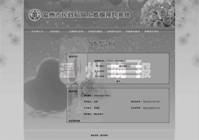 20分钟后,该名负责人给记者打来电话说,“温州市民政局网上婚姻登记系统”已被停掉。