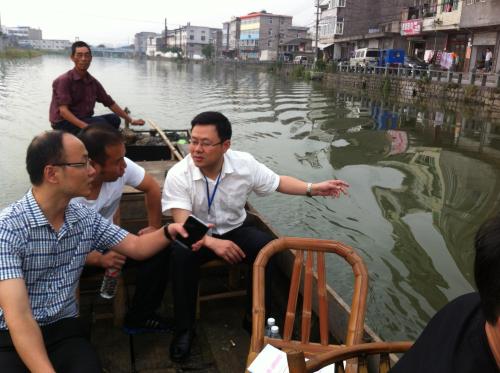 2014年9月25日海滨街道党工委书记范朝阳率副主任章炜、方益察,环保所,城管与行政执法所,农办等相关人员,搭乘保洁船对海滨街道辖区的河道进行“五水共治”专项全面检查,并对检查中发现的占用河道搭建瓜棚、阻水违章,河面保洁不到位,河岸边乱堆放,沿河违章企业,对污水直排企业等问题分别进行部署整改及责成农办、城建办、行政执法所、环保所等相关部门抓好落实。