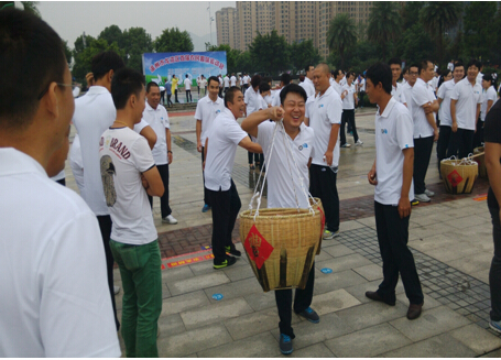 秋分时节,风轻,气净。淡淡的细雨吹拂着跳跃成一种泼墨般的诗情画意。人们的脸上洋溢着喜悦的笑容。池塘抓鱼项目让运动员们费劲了九牛二虎之力仍不能将那小小的泥鳅制伏;田园投苗项目考验着运动员们的投“苗”精准性;农夫耕田项目让运动员们体验到了农耕的艰辛;挑担农品接力项目则将活动氛围推向了高潮,运动员们挑着扁担艰难的维持着平衡,踉踉跄跄冲向终点;抗旱救灾项目让运动员们在游戏中感知到抗旱救灾的艰巨性与重要性;运动会还进行了穿针插秧、推车运输等其他项目。