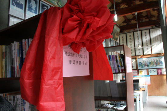 龙湾民进送“书架子”进民办图书馆