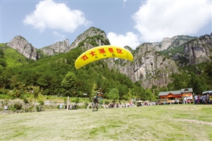 除了看高空飞渡,游客还可以在这里玩动力滑翔,体验攀岩、速降、滑索,住林间小木屋。当天一早,动力滑翔爱好者“一刀”和5个朋友,从七都出发,乘着动力伞从空中用了近2个小时,空中直达百丈瀑。看着脚下一排排的车龙,他说,一路过来,在高空中看风景,也别有滋味。楠溪江风景好,草坪开阔,风向稳定,百丈瀑度假区专门成立了动力滑翔基地。(见习记者金朝丹报道组叶圣义)
