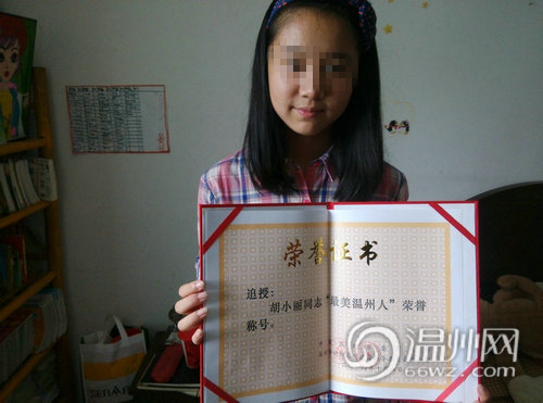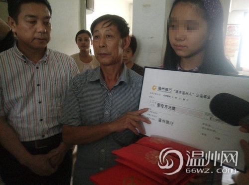 温州10万元慰问金送救人女教师 其女满屋奖状