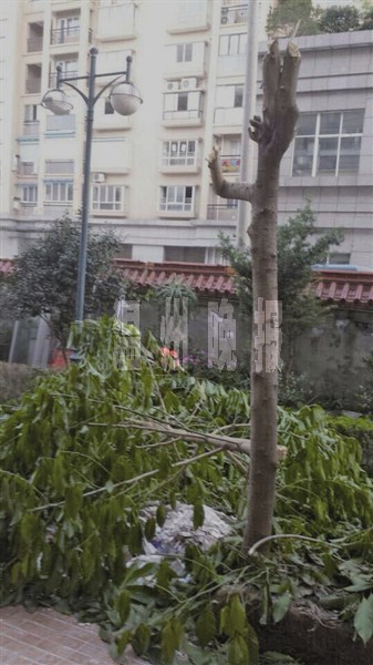 小区内大树招风被修理 斩成秃枝起争议