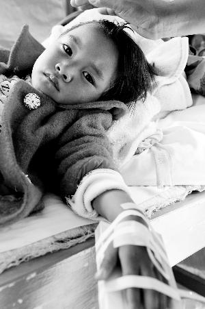 10月8日,一名孩子在景谷县第二人民医院救灾点接受医治。新华社发