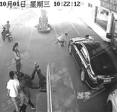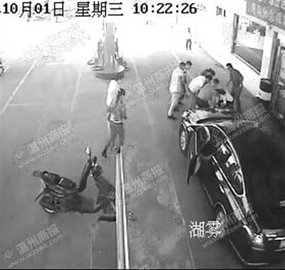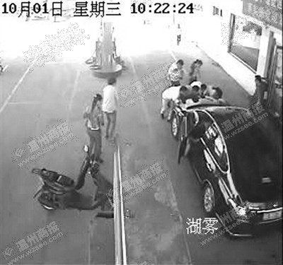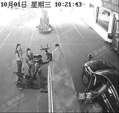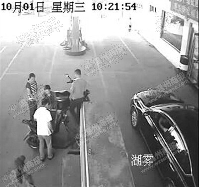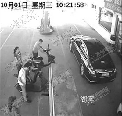 加油站的监控记录了前因后果:事发当天10时20分许,张某一行人的两辆摩托车上下来两名小孩,其中一小孩跑去加油机旁观看加油,小俊则走到正在加油的一辆轿车前面,蹲下来在地面上写写画画。
