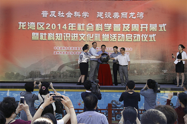 龙湾新闻网讯 10月11日,龙湾区2014年社会科学普及周开幕式及社科知识进文化礼堂活动启动仪式在永中街道镇中文化礼堂举行。据悉,本月起,我区将利用4个月左右时间,以“普及社会科学建设美丽龙湾”为主题,持续开展“微营销创业培训讲座”等79项形式多样、内容丰富、贴近基层群众生活的活动。(陈出 叶晓东摄)