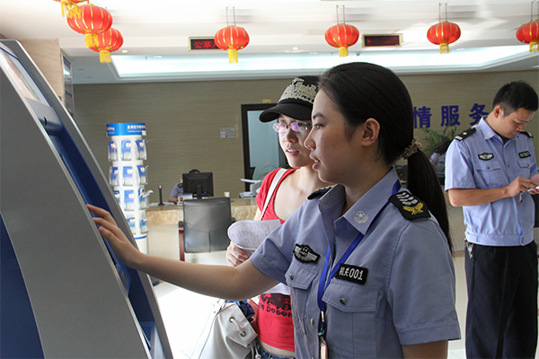 龙湾新闻网讯 近日,龙湾公安分局出入境大厅新增了一台自助填表机,今后市民办理出入境证件就不用手工填写表格了,而只需将二代身份证放在填表机阅读器读卡区域,系统就会自动读取申请人身份信息,生成申请表主要内容,一张表格仅需1分钟时间。避免了手填表格极易出错、涂改的缺憾,对于一些文化程度较低或者有残疾的申请人免去了不会或不能书写的烦恼,有效地提高了办证效率。(陈智慧 谢容伟 摄)