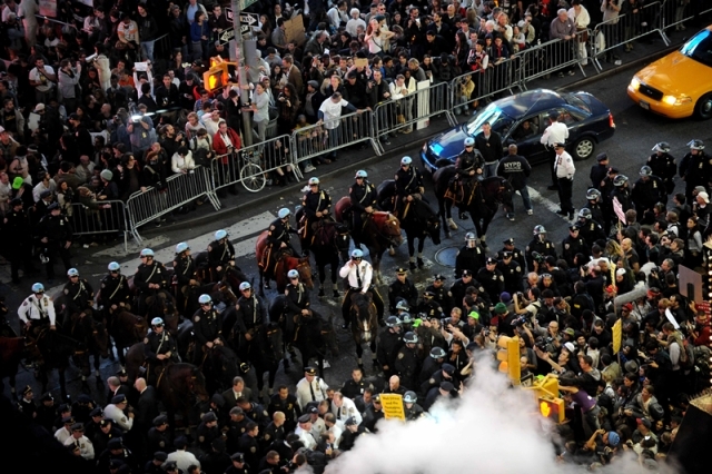 实际上,各种名目的“占领”运动近年来在多国都有出现,成为街头政治的一种主要表现形式。而三年前那场持续数月、参与人数众多的“占领华尔街”运动更是颇具示范影响。事过境迁,当我们再去回想那一度席卷全美、扩散全球的美国“占领”运动,可能更容易弄清楚“占领”活动的底线在哪里,顺便也能看看美国警察是怎样对付“占街”的。