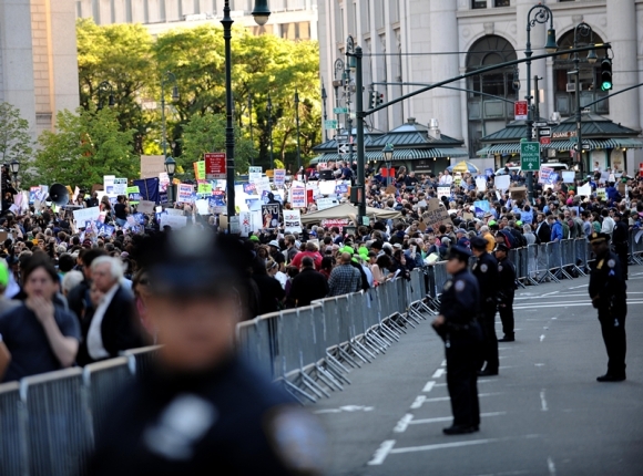 新华国际客户端前驻纽约记者张川石说,依据纽约法律,超过一定人数的抗议活动须提前向警方报备,并有严格的时间、地点及游行路线限制,在警方监视下展开。“占领华尔街”之所以一度声名大噪,也与他们频繁越过“底线”并引发冲突有关系。