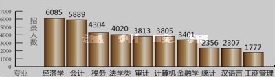 2015年国家公务员考试招录人数最多的十大专业如下: