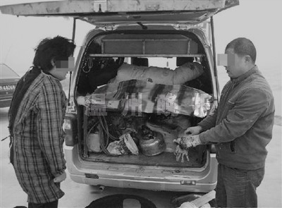 在车主的同意下,记者先后打开4辆车的车门,发现它们的内部结构很相似,车内都用铁架焊的板子床将车内分隔成上下层,上面的硬板床放满了四季的衣服及被子,下面就是锅碗瓢盆生活用品,那些玻璃瓶装的都是补漏材料,至于金属刀具则是抹泥刀等工具。