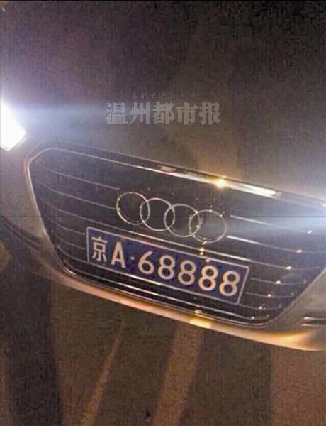 前天晚上7时许,微博网友“南雁百事通”在平阳县南雁镇发现一辆车牌号为“京A68888”的雷克萨斯轿车,随后拍了照片发微博,感叹在这小地方也能碰到如此“牛B”的车牌。2个小时后,令网友更震惊的一幕出现了。“打球回来楼下又一辆,又是‘京A68888’,怎么回事?”“南雁百事通”发出的第二张照片中,一辆奥迪轿车所挂的车牌同样为“京A68888”。