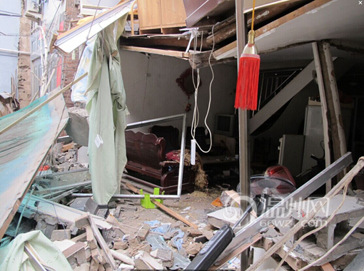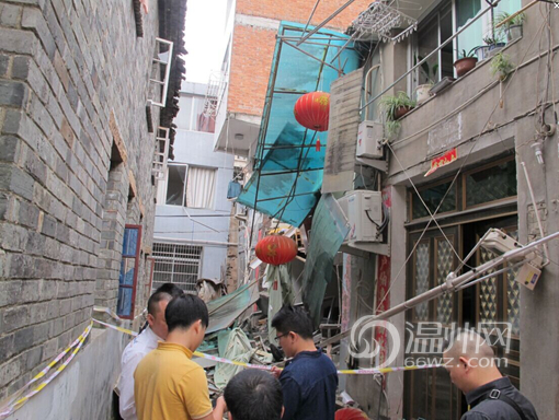 此次爆炸导致房屋不同程度的坍塌,隔壁的房屋墙壁、门、窗玻璃都有不同程度的受损,所幸未发生人员伤亡,
