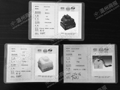 今年4月份的一天,周某某拨通“0577”电话联系孔小江,“结果对方说孔小江不在公司了。”曾保证自己能赚到钱的客服不见了,不免让周某某心生疑虑,“我把5块玉石,包括2块黄玉、2块和田玉、1块白玉拿给我们当地专业的鉴定机构看,他们一看证书就说是假的。”