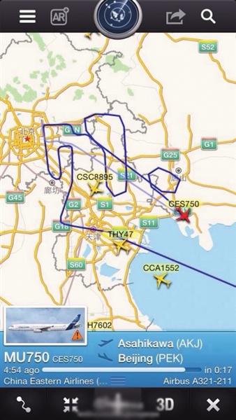 25日晚,一微博发布东航MU750客机航迹图,显示飞机出现两个圈状轨迹。随后,有微博称其备降济南被拒,最后备降青岛。微博截图