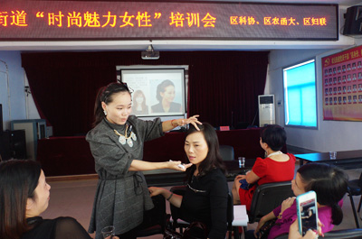 此次“时尚魅力女性”培训活动主要分为四个版本,分别为“基础护肤知识和生活美妆”、“日常头发造型技巧与聚会妆容”、“手部护理和美甲”、“服饰搭配和形体”。培训邀请国家高级化妆师张建钗、黄璋丽等老师授课,现场学员在各位老师优雅大方、温文尔雅的个人魅力的感染下,尽情徜徉在礼仪、时尚的世界里。各位老师从形象、仪表、行为礼仪、沟通表达等方面声情并茂地给大家进行演示、讲解。而在场的学员们十分珍惜此次培训,踊跃上台接受老师的指导。