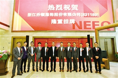 10月23日的北京已是凉意袭人,位于西城区金融大街全国股份转让系统大楼的交易大厅内却是一番热闹景象。这一天,新三板迎来了第三家挂牌温企——浙江乔顿服饰股份有限公司,公司董事长沈应琴及全体股东带着管理团队敲响了开市钟。