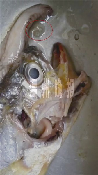 农贸市场买的新鲜黄鱼,破开肚子里面居然有一条4厘米左右长的线虫在蠕动,一名瑞安女子一边端着手机拍摄,一边不断惊呼:“寄生虫啊,这么大条,这个鱼肯定吃不得!”“这鱼肚子里的虫比蛔虫还大,会吃死人的……”而她一旁的母亲则稍显平淡地说:“市场上很多人在卖的,清洗一下,烧熟后就可以吃了。”指其不必大惊小怪。