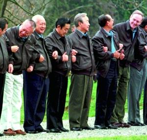 1997年,加拿大温哥华,加拿大总理克雷蒂安送给出席者每人一件特别的牛皮夹克。