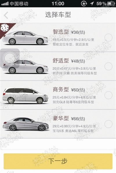 打车软件推“专车”服务 车型高大上车费有点贵