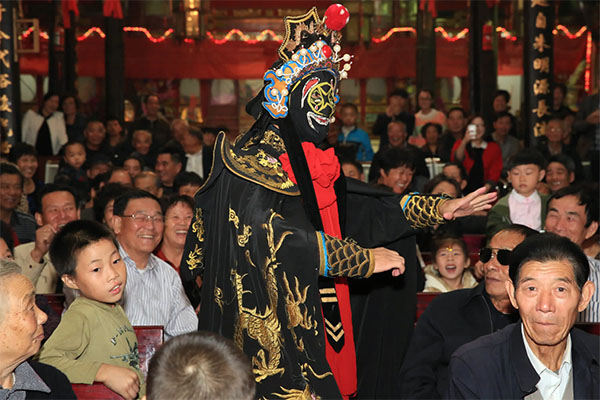 龙湾新闻网讯 前天晚上,瑶溪街道庆祝建区30周年系列活动“善行南洋汇聚温暖”主题文艺汇演在南洋社区朱宅村举行,来自温州瓯剧艺术研究院的50余名演员为社区居民带来了一场公益性的文艺盛宴。本次活动为市文广新局主办,区文广新局和南洋社区承办。图为演员表演的变脸节目受到热捧。叶晓东 张彬彬 摄