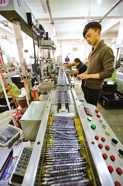 “爱好笔业”生产车间通过“机器换人”实现减员增效。