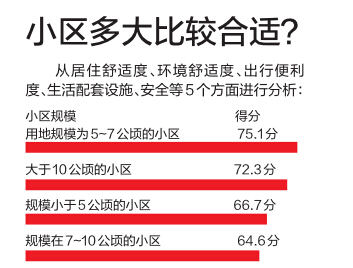 结论:在旧城改造区域,小区用地规模在5~7公顷为宜;在新开发区域,小区用地规模应大于10公顷为宜。