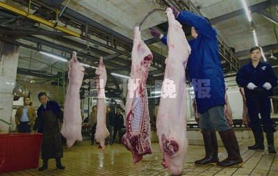 另外,该公司还加强了内部管理,门卫实行24小时值班制度,严格控制进场生猪时间点,并给各种车辆进行有效的消毒与清洗。同时,为了增加公司配送能力,已在近期购置了两辆冷链封闭式配送专用车,为具备条件的星级菜市场配送至客户端,没有条件直送的菜市场,公司出资为分销点搭设分销台,严防猪肉在配送过程中落地或受到不良污染,确保市民吃上安全、放心的生鲜猪肉。