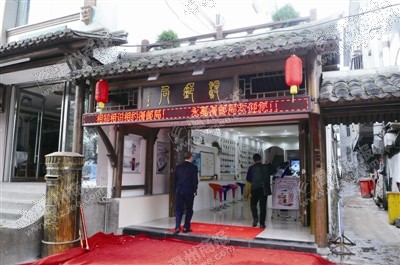 走近漫邮局,记者看到的不是熟悉的“邮政绿”,而是和景区建筑相似的古色古香的精致小楼,连外面的邮筒都被做成了树桩的样子,只有两个红色的灯笼上有漫邮局的标记。