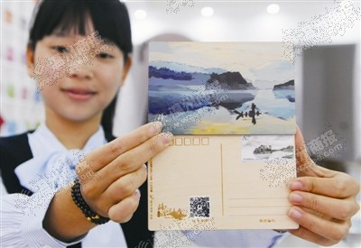 “结合楠溪江风景的不止是建筑的装修样式。”永嘉邮政局函件局局长陈吉星介绍,这个主题邮局融合楠溪江“慢生活”旅游文化资源,除了邮政元素的文创产品外,明信片、书籍、信件等都取材自楠溪江的风光。墙上几排明信片上均是楠溪江的风光,中间一排木质明信片最具特色,以2004年发行的4枚《楠溪江》特种邮票为模板,在木板上将其雕刻出来,背后还贴有这张邮票,可以直接将这块刻有楠溪江风景的木板邮寄出去。陈吉星介绍,用玉石雕刻的《楠溪江》邮票也已在审批,届时将在此展售。