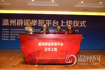 为团结和协调各方力量致力网络谣言治理,有效遏制网络谣言及网络违法有害信息的扩散和传播,营造健康文明的网络空间,11月18日,由市委宣传部、市网信办、市经信委和市公安局牵头指导,市网络文化协会主办,温州日报报业集团、温州广电传媒集团承办,新浪网、新浪微博、腾讯大浙网、电信温州分公司、移动温州分公司、联通温州分公司协办,温州网负责承建的温州辟谣举报平台正式上线。