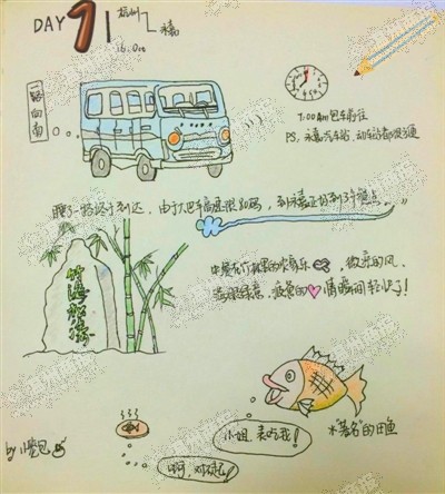 记者发现,手绘游记的每幅插图下都写着“by小笼包”字样,昨日,记者通过多方搜索,终于联系上了“小笼包”,即游记的作者。
