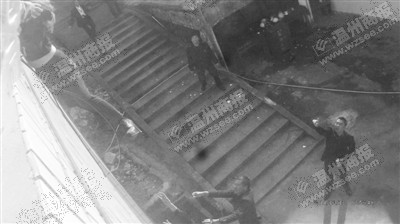 千钧一发之际,民警一把抓住跳楼女子。视频监控截图