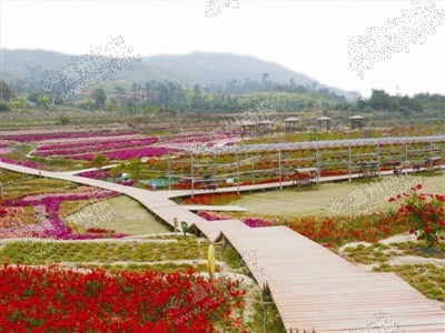 记者在浙闽台民族花海基地看到,这里种植有大丽菊、紫薇、三角梅、熏衣草等200多个品种,所有的花卉依山地高低而种植,一层层,一片片错落有致。最吸引眼球的壮观场景是园区内长达1公里的观光花道,还有立体造型的花坛。在花海中,搭设了木制高架桥,站在桥顶环顾远处,密密麻麻的各种花卉,开满层层叠叠的梯田,蜿蜒的木制游步道穿行花海之间,与四面青山相映成趣。在这儿,目之所及,花朵五彩缤纷,美不胜收。除了观赏花海,还有民族特色的畲族民俗表演区、农耕文化展示区、餐饮农家乐、熏衣草产品销售中心、亲子娱乐区等。据温州市委农办(市农业局)相关负责人介绍,此处是目前温州最大的花海主题农业休闲观光园。