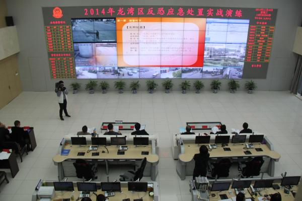 为检验全区暴恐突发案件应急处置的状况,提高各反恐最小作战单元和社会应急联动单位应对突发暴恐案事件的处置能力和应急救援水平,11月19日下午,龙湾区在温州市粮油铁路中转储备库举行了暴恐突发案事件应急处置实战演练。区委常委、公安局长李伟、区委常委、常务副区长卢斌及参演部门负责人坐镇指挥观摩。