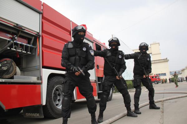 此次演练以发生在温州市粮油铁路中转储备库内现场发生暴恐袭击,引发粮油仓储爆炸、起火并有人员受伤的模拟警情,区公安分局指挥中心(社会应急联动指挥中心)指挥调度区反恐最小作战单元力量和社会应急联动力量,开展疏散人员、灭火、排爆、伤员救治、嫌疑人员围追堵截等处置工作。