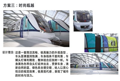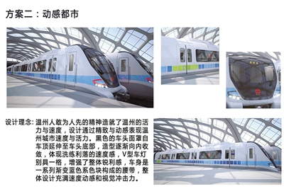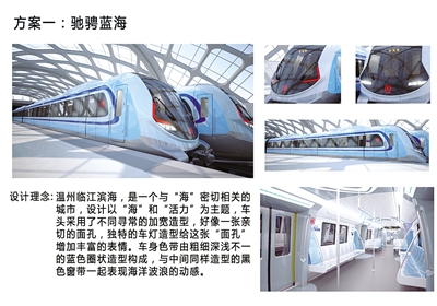 在此次公布的三种车辆外观设计方案中,“驰骋蓝海”以“海”和“活力”为主题,车头采用了不同寻常的加宽造型;“动感都市”V型车灯别具一格,车身是一系列渐变蓝色系色块构成的腰带,整体设计充满速度感和视觉冲击力;“时尚瓯越”车身清新自然的蓝、绿色系合理交错,表现城市的时尚与活力。市民可登陆市铁投集团官网(http://www.wzrailway.com)参与投票并留下意见建议,或者通过邮箱(wenzhoucheliang@163.com)提交您中意的方案。