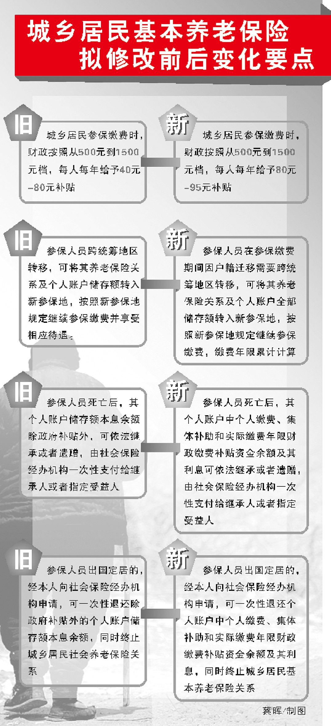 相比之前的规定,《决定》明确提出待遇领取人员死亡后,应从次月起停止支付其养老金。
