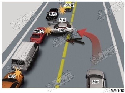 据当事驾驶员唐某称,当时他正开着别克沿中心路行驶,突然车子右边蹿出一个人影,他下意识向左打方向,不料左边还有一名行人,于是他就准备刹车减速,不想错把油门当刹车,结果径直撞上了左边的行人。此时,慌了神的他又向左猛打方向,结果一路撞上了停在路边的一辆雪佛兰轿车,巨大的撞击力使雪佛兰轿车又撞上了停在车后的一辆七座,接着七座刮擦了后方一辆路虎。此时,唐某更手足无措,又向右猛打方向,不料撞上一辆正准备靠边停车的现代轿车,被撞停的现代轿车又与后方正常行驶的北斗星轿车发生刮擦,结果来了个六车相撞。