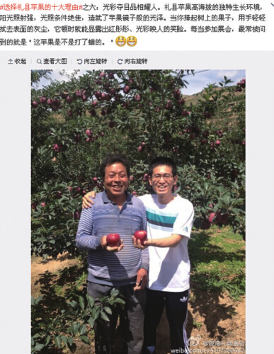 苹果被冰雹破相滞销利用微博帮果农推销