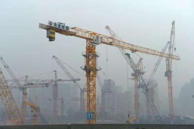 11月20日,国贸附近雾霾中的建设工地。京华时报记者谭青摄