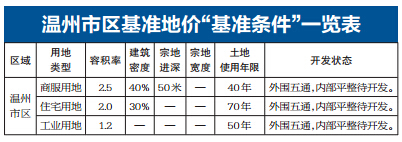温州市区基准地价更新调整完成 明年3月1日起实施