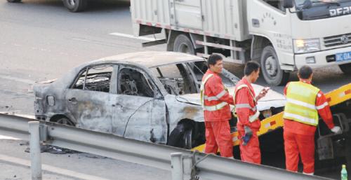 据事故现场的高速交警透露,当天下午2时06分,交警接到事故报警后赶到现场,消防队员已经在灭火,起火的是一辆外地牌照的大众“宝来”轿车,车内的男性驾驶员虽然逃出车外,但因严重烧伤被送往医院抢救,而车内副驾驶座位上一名乘客已经被烧得面目全非,当场死亡。