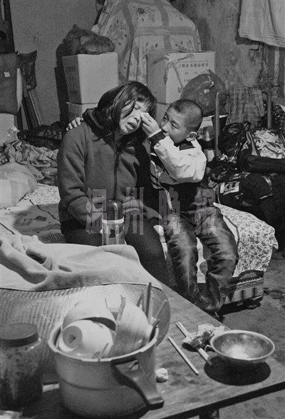 她身边的小儿子懂事地给妈妈擦眼泪,虽然没人告诉他,但11岁的他似乎已明白了一切。